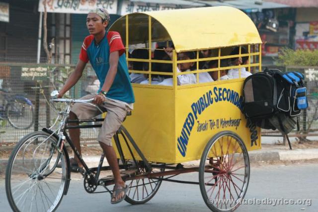 Nepal, Mahendranagar town - School bus/tricycle!
