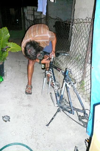Late that evening, Jim dismantling my corratec to meet the plane the next morning!
